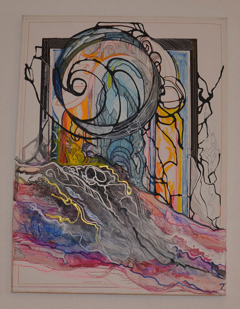 George Classen understands the recurring theme of “Physionomic Landscapes” as follows: He draws lines from the coordinate system of the (usually) human face, which he supplements with elements such as color and other lines. This creates a connection between autonomous abstractness and the actually real and visual. The intended ambiguity is intended to give the viewer the opportunity to stimulate their own imagination. George Classen uses the title “Chance and Necessity” of a book by the natural scientist and Nobel Prize winner Jacques Monod as the motto for the creation of his works. “Chance is the distribution of the impulse-controlled lines and colors, the necessity is the coordination of the elements into a coherent whole.”