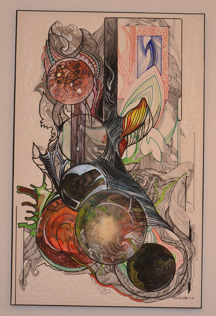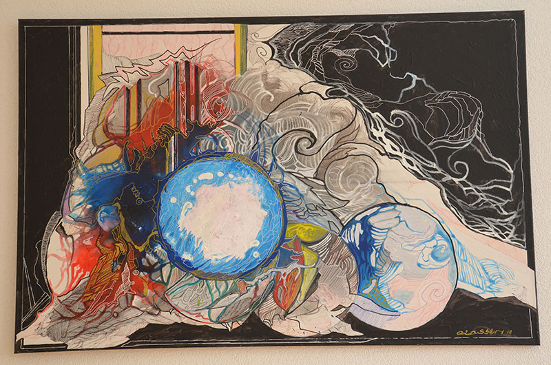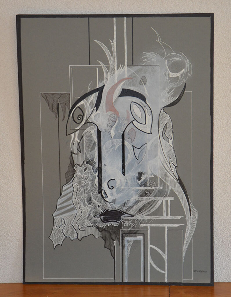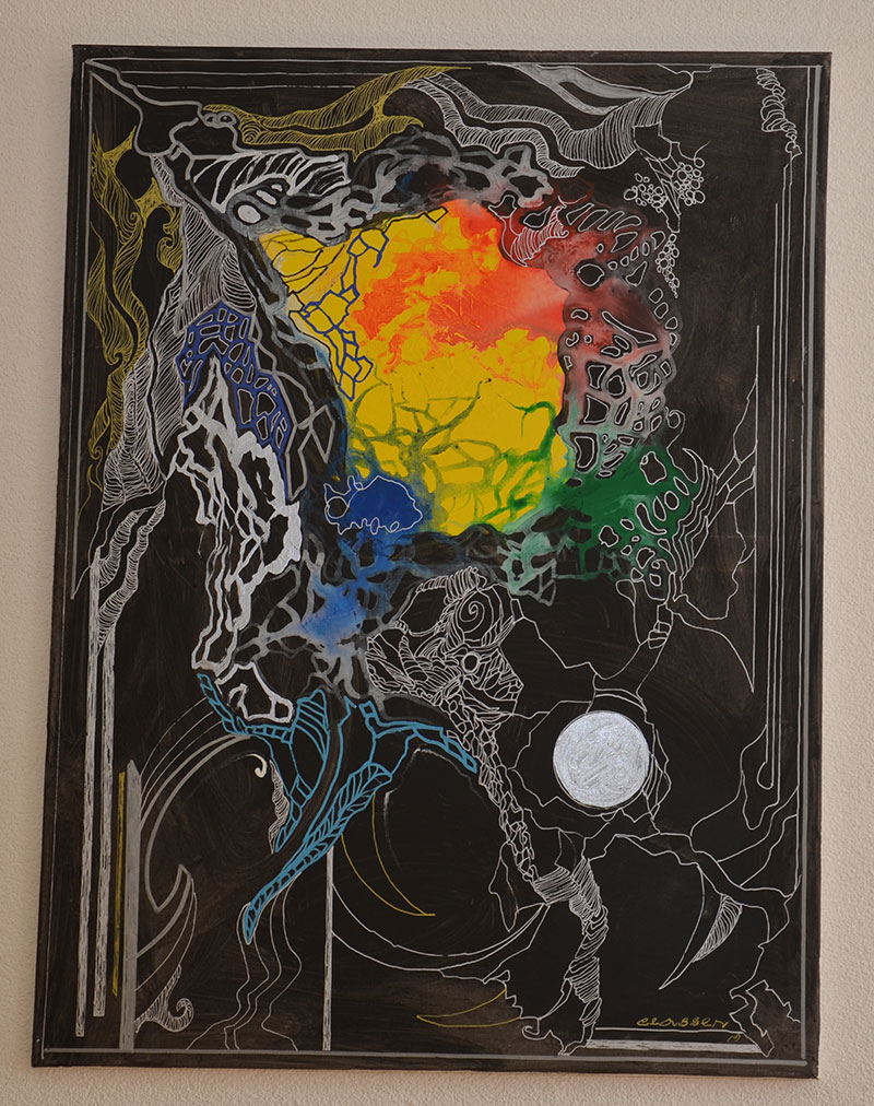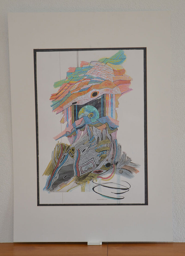 George Classen understands the recurring theme of “Physionomic Landscapes” as follows: He draws lines from the coordinate system of the (usually) human face, which he supplements with elements such as color and other lines. This creates a connection between autonomous abstractness and the actually real and visual. The intended ambiguity is intended to give the viewer the opportunity to stimulate their own imagination. George Classen uses the title “Chance and Necessity” of a book by the natural scientist and Nobel Prize winner Jacques Monod as the motto for the creation of his works. “Chance is the distribution of the impulse-controlled lines and colors, the necessity is the coordination of the elements into a coherent whole.”