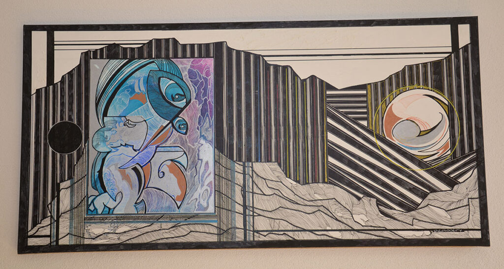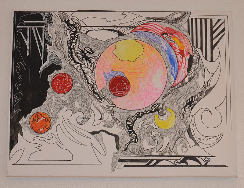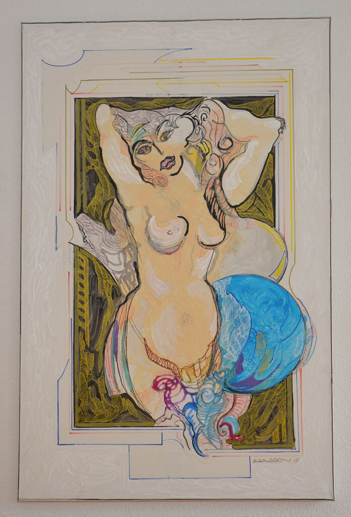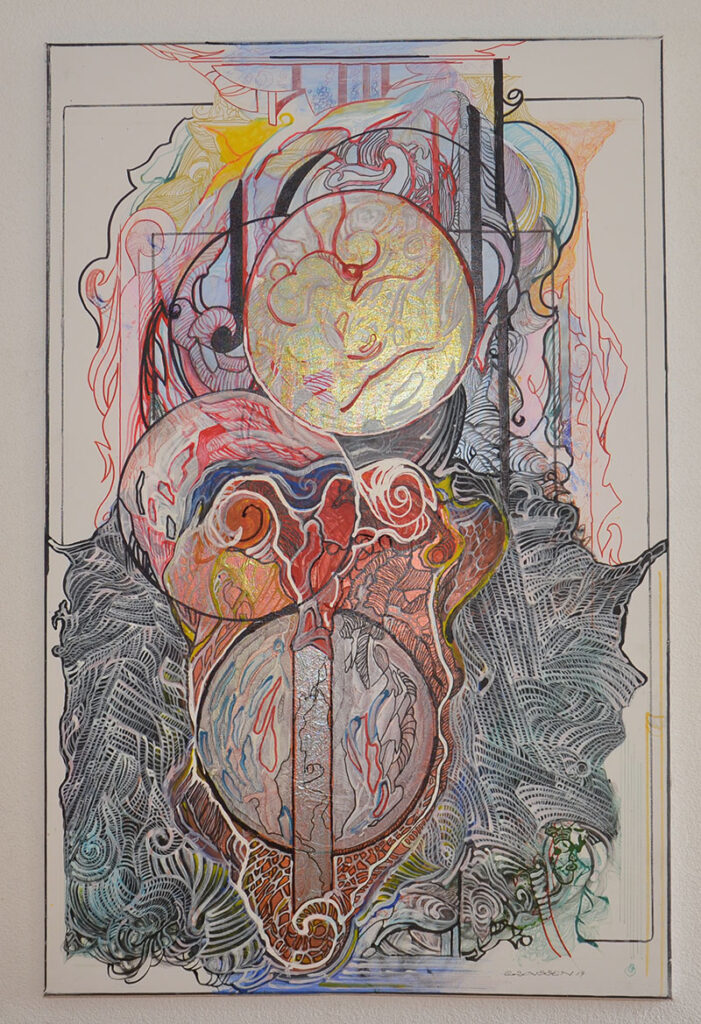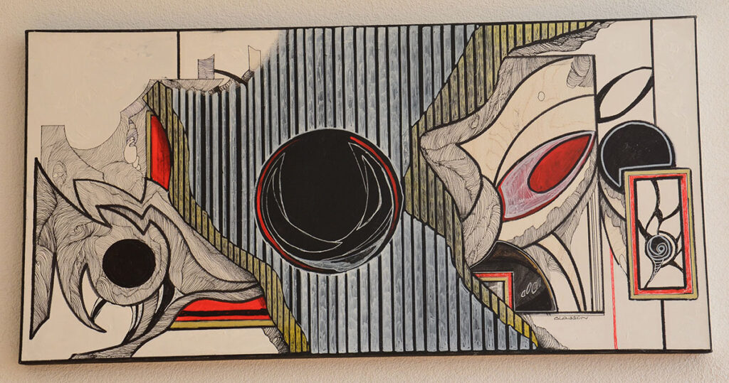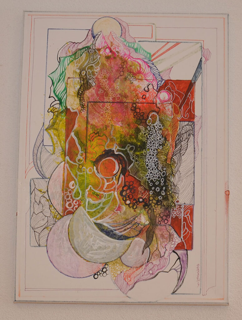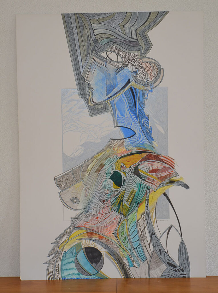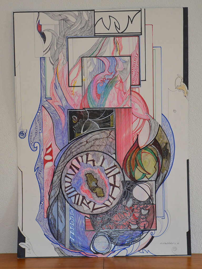 George Classen understands the recurring theme of “Physionomic Landscapes” as follows: He draws lines from the coordinate system of the (usually) human face, which he supplements with elements such as color and other lines. This creates a connection between autonomous abstractness and the actually real and visual. The intended ambiguity is intended to give the viewer the opportunity to stimulate their own imagination. George Classen uses the title “Chance and Necessity” of a book by the natural scientist and Nobel Prize winner Jacques Monod as the motto for the creation of his works. “Chance is the distribution of the impulse-controlled lines and colors, the necessity is the coordination of the elements into a coherent whole.”