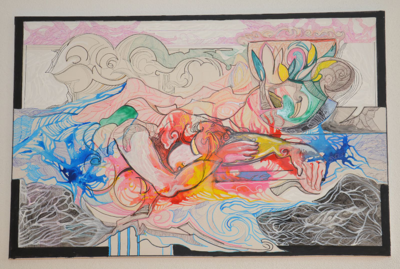 George Classen understands the recurring theme of “Physionomic Landscapes” as follows: He draws lines from the coordinate system of the (usually) human face, which he supplements with elements such as color and other lines. This creates a connection between autonomous abstractness and the actually real and visual. The intended ambiguity is intended to give the viewer the opportunity to stimulate their own imagination. George Classen uses the title “Chance and Necessity” of a book by the natural scientist and Nobel Prize winner Jacques Monod as the motto for the creation of his works. “Chance is the distribution of the impulse-controlled lines and colors, the necessity is the coordination of the elements into a coherent whole.”