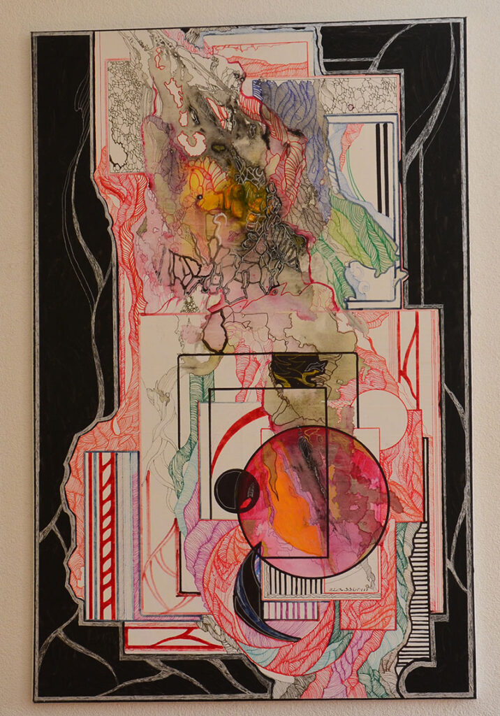 George Classen understands the recurring theme of “Physionomic Landscapes” as follows: He draws lines from the coordinate system of the (usually) human face, which he supplements with elements such as color and other lines. This creates a connection between autonomous abstractness and the actually real and visual. The intended ambiguity is intended to give the viewer the opportunity to stimulate their own imagination. George Classen uses the title “Chance and Necessity” of a book by the natural scientist and Nobel Prize winner Jacques Monod as the motto for the creation of his works. “Chance is the distribution of the impulse-controlled lines and colors, the necessity is the coordination of the elements into a coherent whole.”